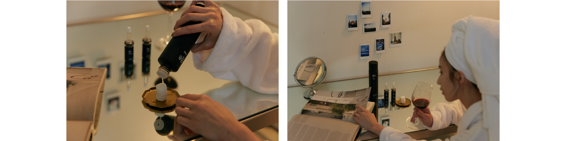 熱氣橫流的卸妝洗浴後,將稠潤的純化妝水倒入面膜紙上,趁浸潤時刻,開啟今天的保養儀式