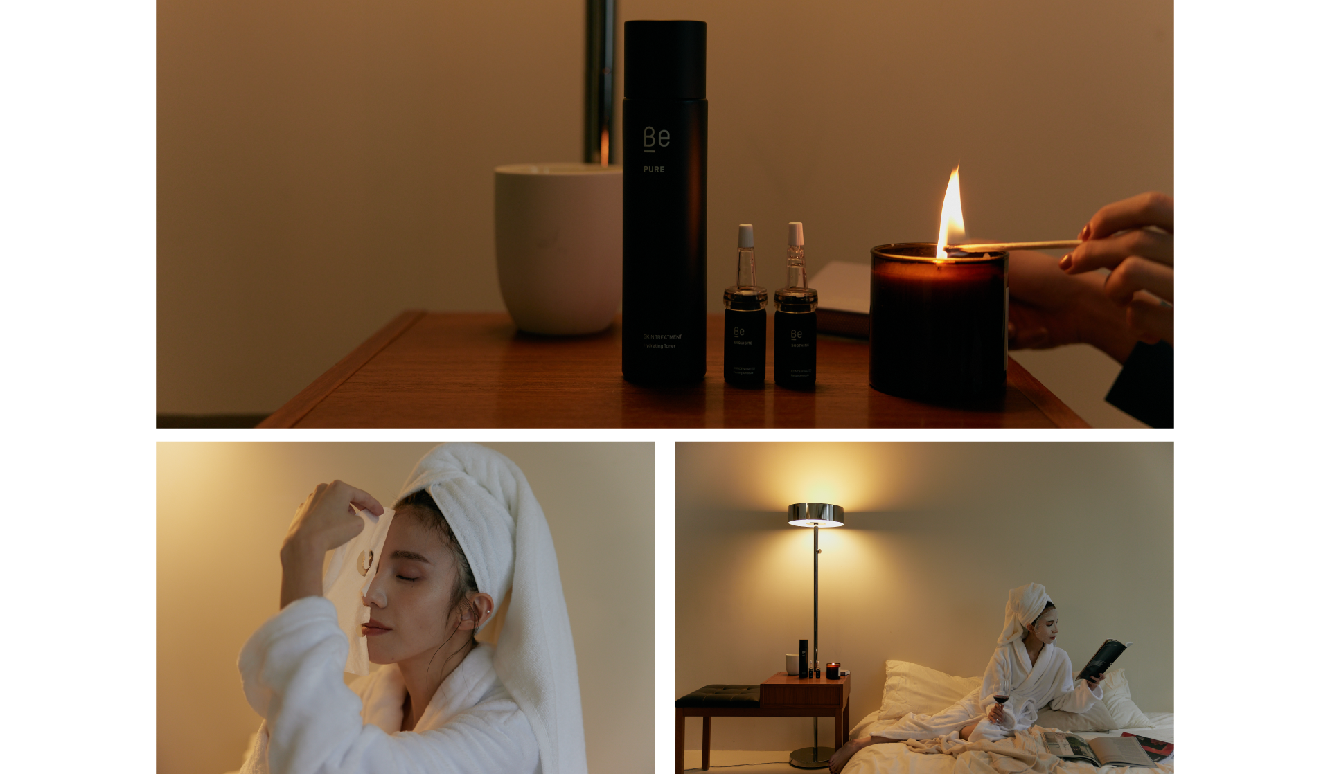 點起香氛,讓空氣滿溢迷人香氣,讓純化妝水浸透的面膜填滿每一吋肌膚細胞,滴答滴答,滲進安定飽水的養分,深層細胞在此刻補滿基底