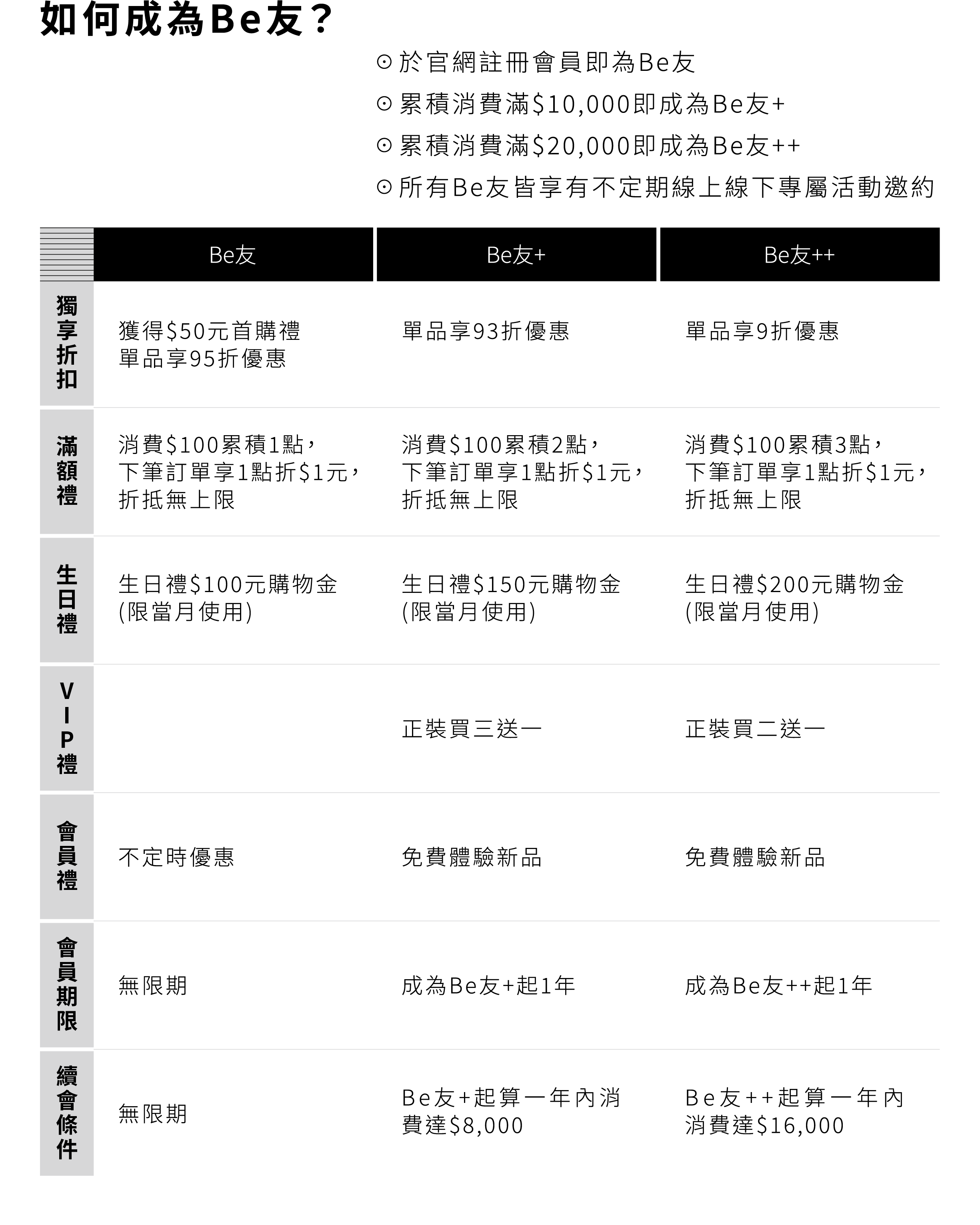 Be友首購金$50僅限購買正裝使用,期限為註冊日起30日。會員95折優惠為首購後下次購買時生效。