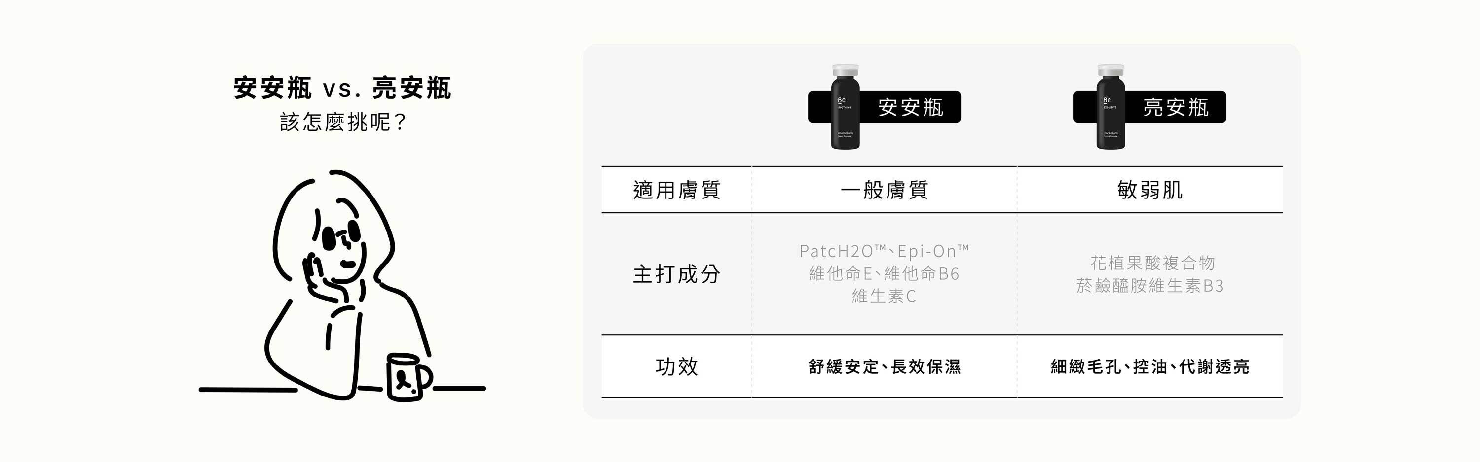 對於肌膚偏敏感卻又希望更細緻透亮的使用者請先購買亮安瓶試用包確保肌膚適合度。